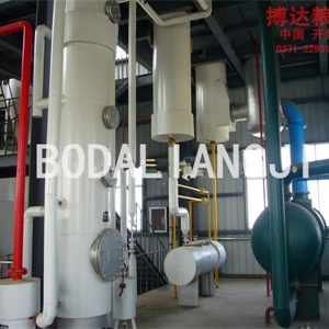 产品工艺过程是:把油料胚(或预榨饼)浸于溶剂中,使油脂溶解在溶剂内(组成混合油),然后将混合油与固体残渣(粕)分离,混合油再按不同的沸点进行蒸发、汽提,使溶剂汽化变成蒸气与油分离,从而获得油脂(浸出毛油)。溶剂蒸气则经过冷凝、冷却回收后继续使用。粕中亦含有一定数量的溶剂,经脱溶烘干处理后即得干粕,脱溶烘干过程中挥发出的溶剂蒸气仍经冷凝、冷却回收使用。产生需要的油脂。
